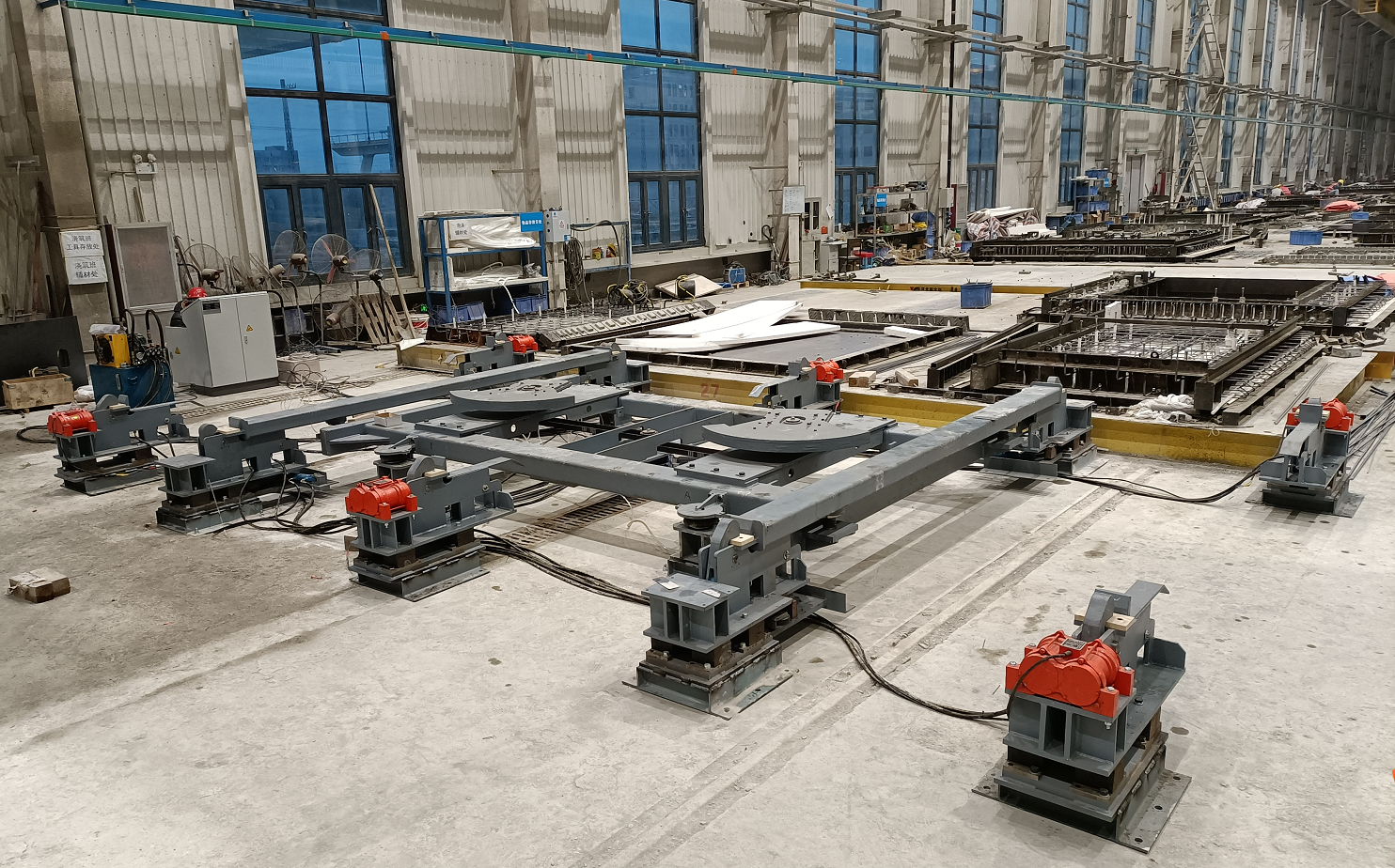 該振動(dòng)臺(tái)為分體式結(jié)構(gòu),主要由振動(dòng)系統(tǒng)、液壓夾持系統(tǒng)、模臺(tái)、流轉(zhuǎn)驅(qū)動(dòng)系統(tǒng)及數(shù)字化控制系統(tǒng)等構(gòu)成。工作時(shí),上部模臺(tái)可流轉(zhuǎn),振動(dòng)時(shí)動(dòng)態(tài)夾持為一體。該振動(dòng)臺(tái)將混凝土密實(shí)過(guò)程分解為水平低頻鋪開(kāi)及垂直中高頻定向振動(dòng)兩個(gè)過(guò)程,垂直定向振動(dòng)使能量精確聚焦,混凝土內(nèi)空氣可以沿最短路徑厚度方向快速排出,并且消除常規(guī)振動(dòng)系統(tǒng)的內(nèi)耗問(wèn)題。技術(shù)原理先進(jìn),振動(dòng)密實(shí)效率高,優(yōu)勢(shì)明顯。