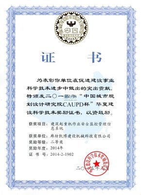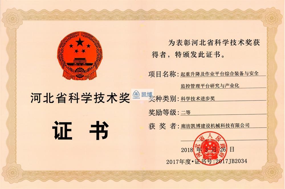 河北省科學(xué)技術(shù)獎(jiǎng)二等獎(jiǎng) 起重升降及作業(yè)平臺綜合裝備與安全監(jiān)控管理平臺研究與產(chǎn)業(yè)化