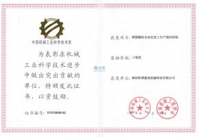 機(jī)械工業(yè)科學(xué)技術(shù)獎(jiǎng)三等獎(jiǎng)智能化鋼筋 部品生產(chǎn)成套設(shè)備研究與產(chǎn)業(yè)化開發(fā)