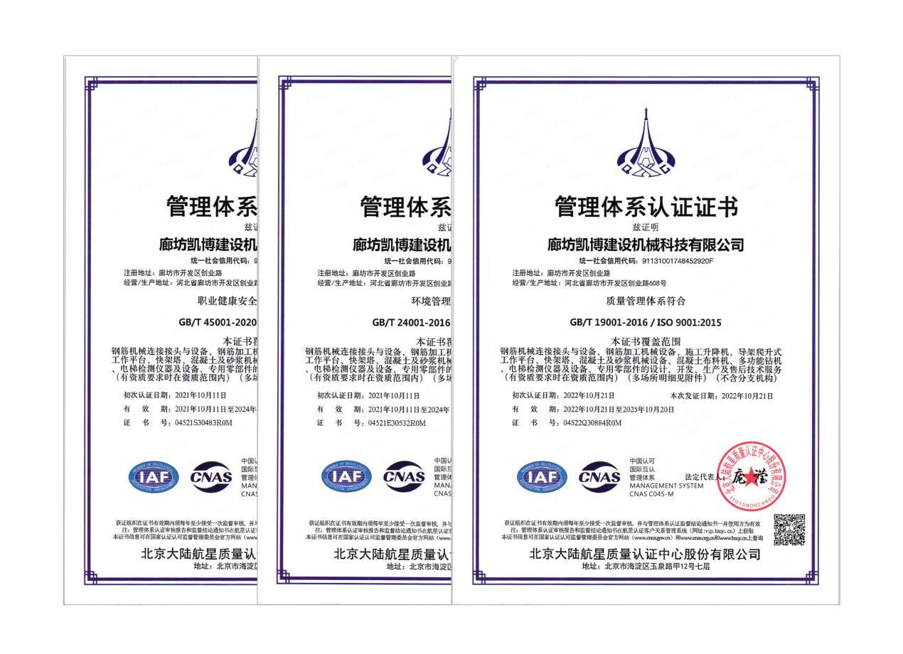 2022年9月26日至30日,北京大陸航星質(zhì)量認(rèn)證中心股份有限公司對廊坊凱博建設(shè)機(jī)械科技有限公司開展了為期5天的質(zhì)量、環(huán)境、職業(yè)健康安全管理體系外審工作,在公司領(lǐng)導(dǎo)的高度重視和各職能部門的積極配合下,外審工作順利完成。