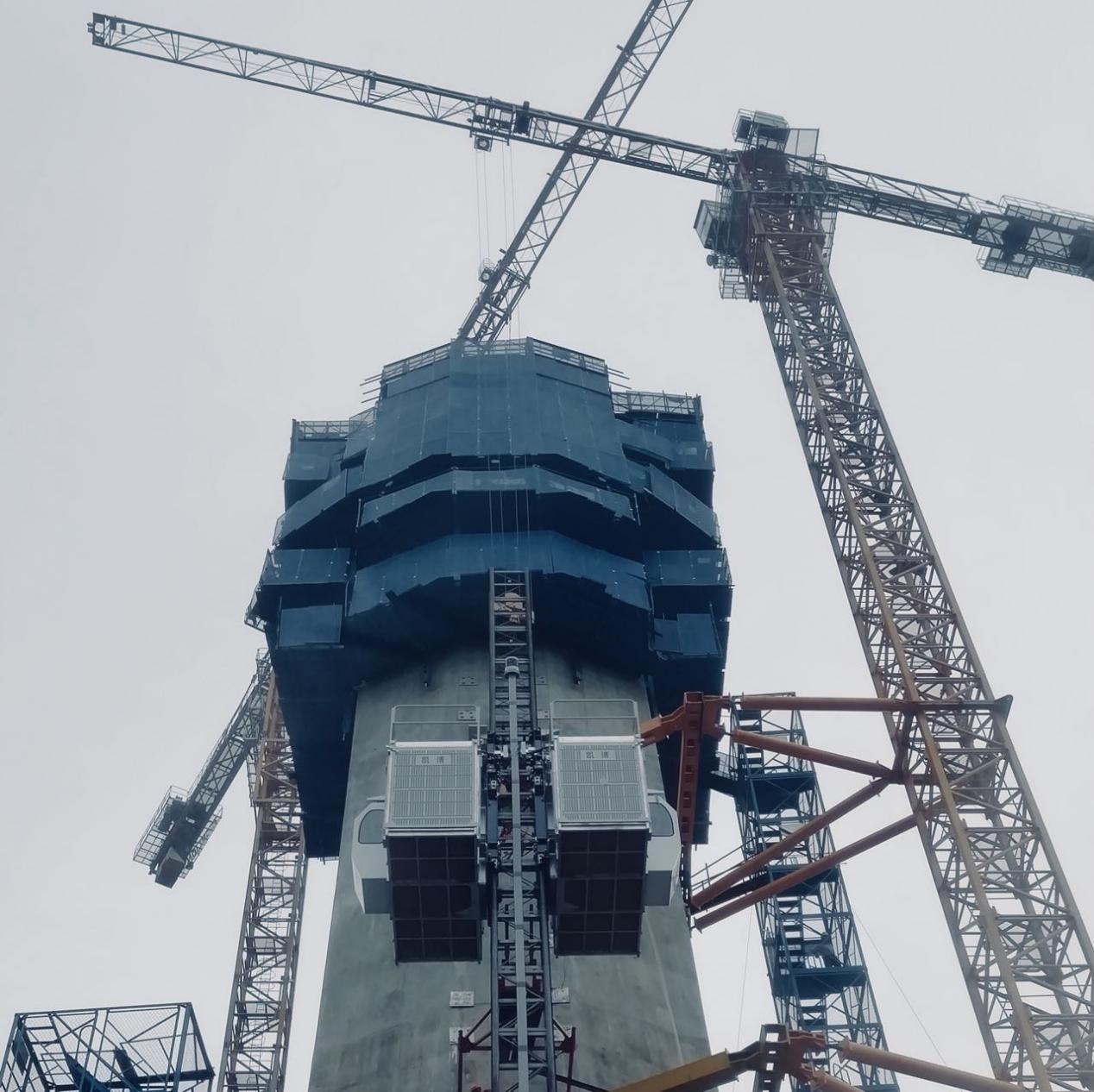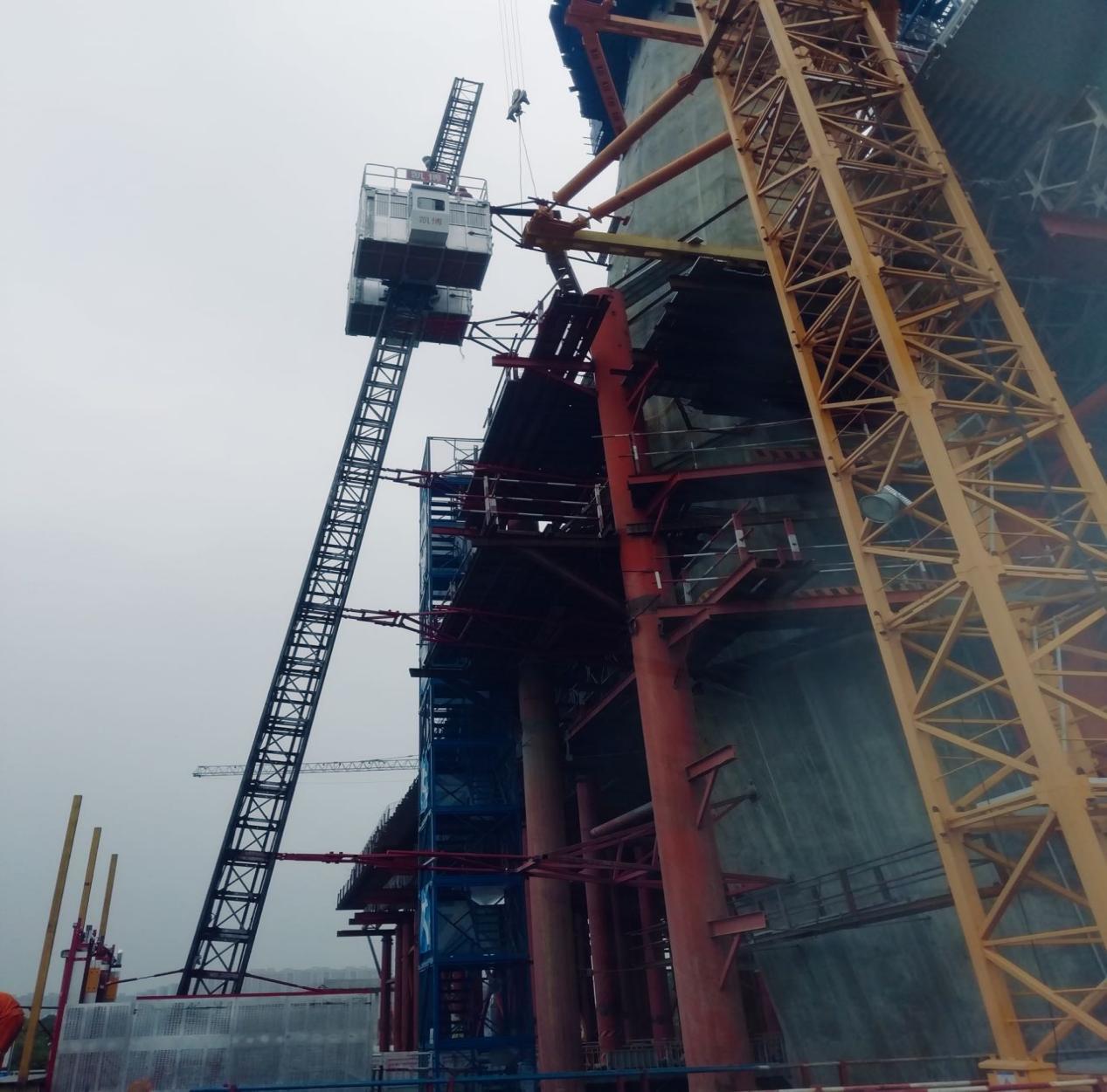 近日,廊坊凱博建設(shè)機(jī)械科技有限公司生產(chǎn)的斜、直線兩用施工升降機(jī)順利投入到廣東佛山“三水三橋”項(xiàng)目。此類(lèi)型升降機(jī)承重架和吊籠經(jīng)過(guò)特殊設(shè)計(jì),角度變化范圍為0~15°,在不增加任何部件的情況下,通過(guò)簡(jiǎn)單操作即可實(shí)現(xiàn)斜、直線轉(zhuǎn)換。斜線運(yùn)行時(shí),吊籠始終保持水平,角度為0時(shí),該機(jī)可做為普通直線升降機(jī)使用,吊籠尺寸和提升速度可根據(jù)用戶(hù)要求定制。該設(shè)備廣泛應(yīng)用于煙囪、橋梁等建筑工程。